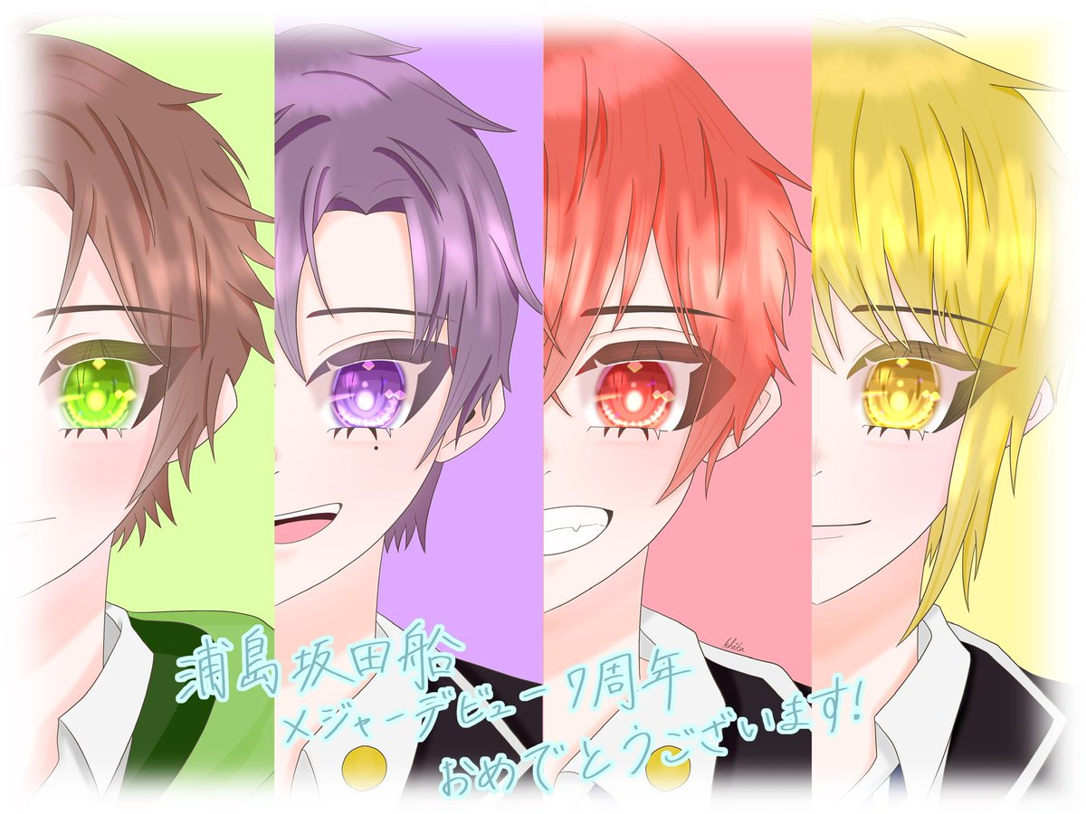 浦島坂田船メジャーデビュー7周年おめでとうございます!! これからも素敵な船旅が続いていきますように🎀🫧𓂃𓈒𓏸 #浦島坂田船メジャーデビュー7周年 #うらたぬ王国の美術館 #しまーと #坂田です #センラの絵ぇやん