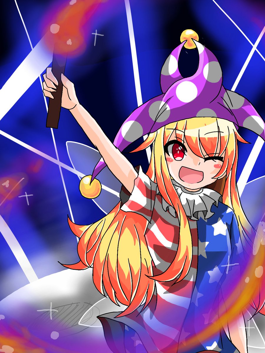 #東方 #東方イラスト #クラウンピース #イラスト好きな人と繋がりたい 5面道中の妖精達が自機狙いの青レーザーを撃ってくる所をイメージしてます。