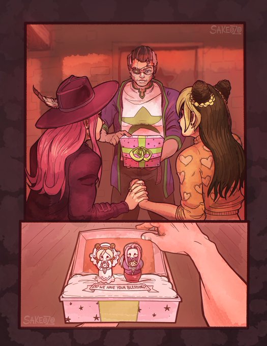 Happy Holidays to @CrRr04 For @GOGOCollabs's #SecretSantaGOGO I drew both Formaggio and Illuso shrank down into a small size and danced. You know that jewelry box with ballerina? But of them instead of a ballerina. Enjoy!! #jjbafanart This is my first finished work using CSP!