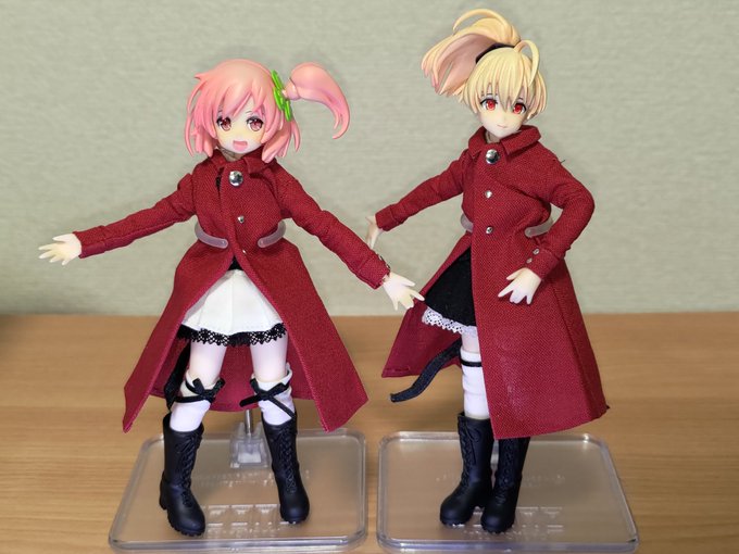 あるふぁさん(@alpha_san_desu)作:ナイトルージュ衣装~~~!!! 念願叶ってやっと、我が家の鶴紗と梨璃に着せてあげることが出来ました!!ありがとうございました🌙💄 深紅のコート、カッコイイね、可愛いね…… #アサルトリリィドール部