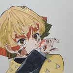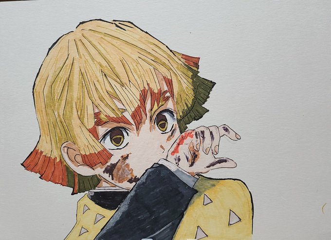 今日はお休みなので以前描いた善逸を手持ちのカラーマーカー?で塗り塗り。色塗りかなり楽しいですが手持ちのマーカーの筆先が細い方でも太いので細かい絵には向かないと思う。コピック欲しいけ。。。デジタルもムズいし。。深いなぁ〜 #鬼滅の刃イラスト #イラスト好きな人とつながりたい