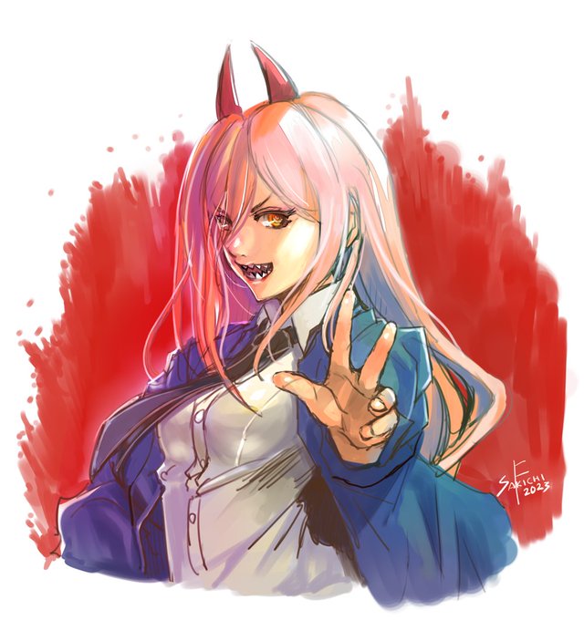 9 24 (らくがき) 唐揚げは全部ワシのじゃ!とか言い出す魔人 なる早で塗った🐣 #パワ子 #チェーンソーマン 23/01/05 23:10