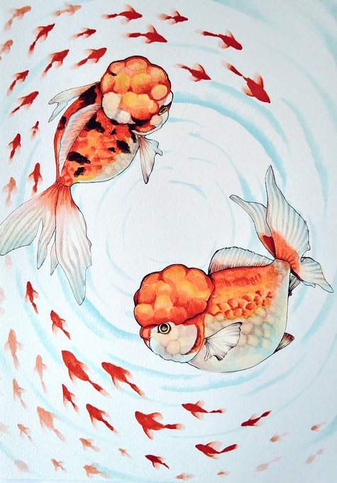 祖母が涼しい絵が欲しいとの 事だったのでそれに答えて 昨日描いた金魚です👍 #コピック #イラスト