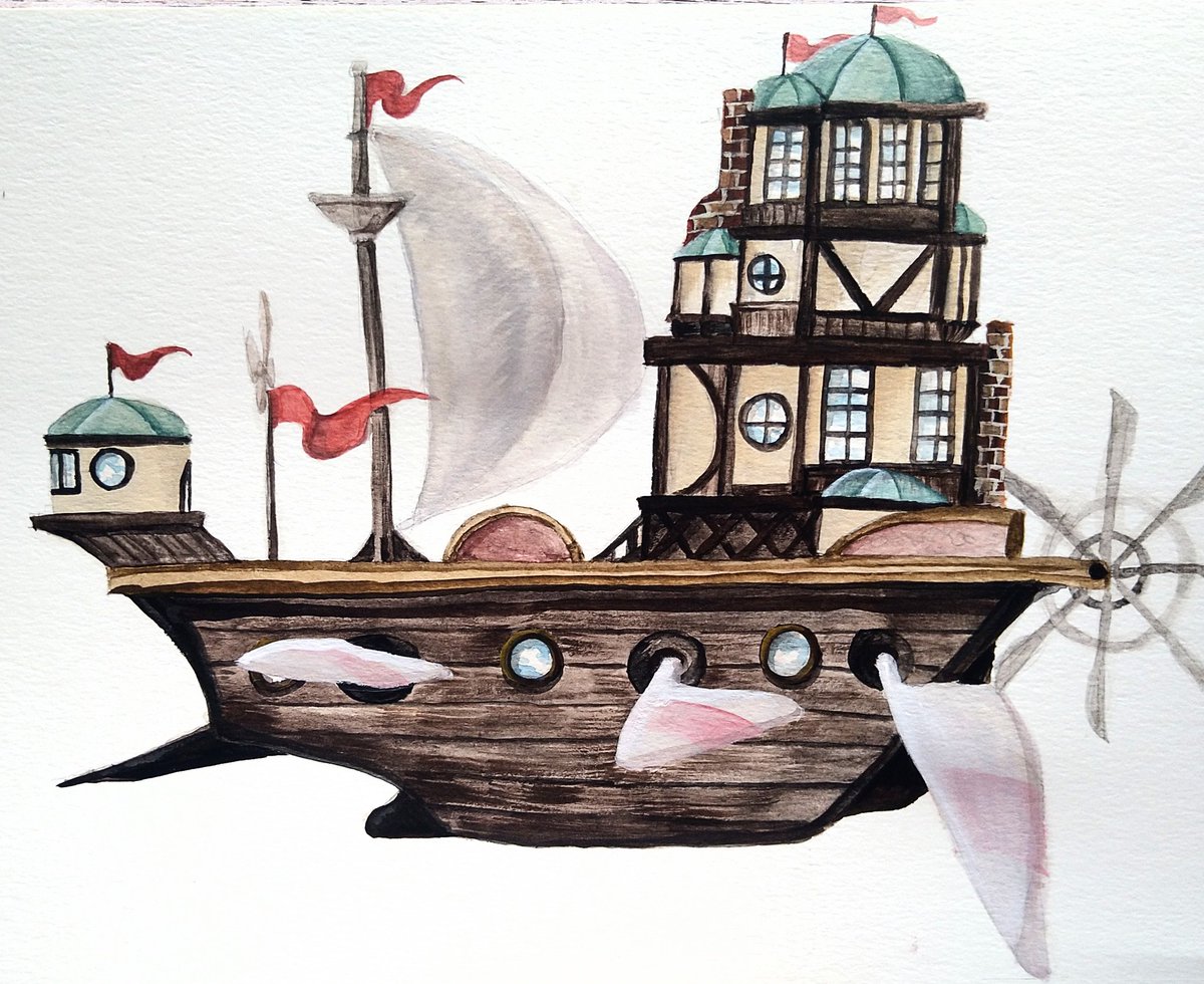 建物練習しつつ 創作に出してみたい船👍 (気が向いたら加筆するかも🤔) #イラスト