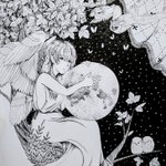 11 173 夜を抱いて🌕🦉 #イラスト #ペン画 22/12/29 15:55