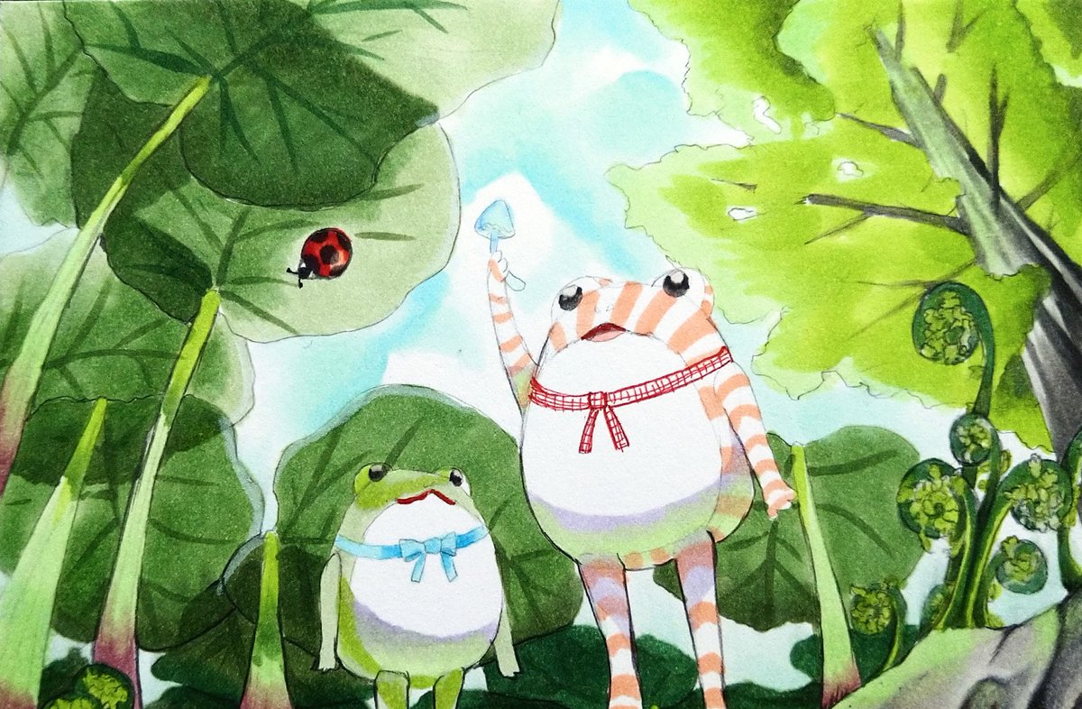 1 11 プレゼントさせてもらった しましまカエルの絵。 #コピック #illustration 23/05/10 07:26