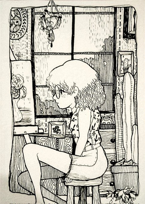 癖っ毛の子🌵 ポストカードサイズのですが 小さい世界が詰まってます。 #ペン画 #イラスト