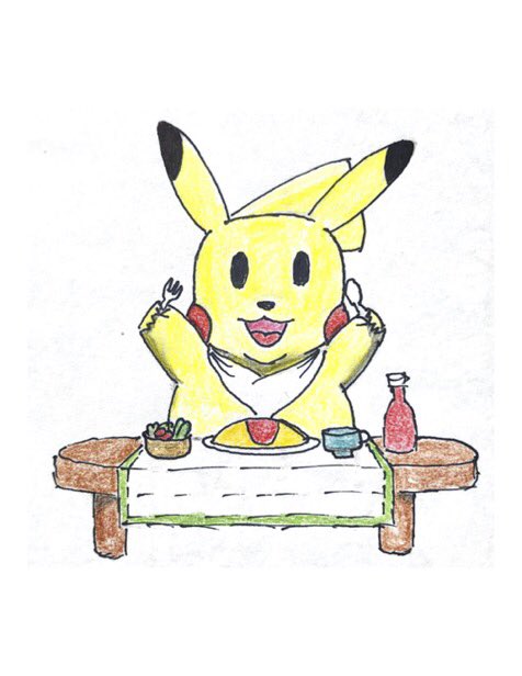 3 7 オムライスセットにはしゃぐピカチュウ #ピカチュウ #ピカチュウのお絵描き #イラスト #色鉛筆 #ボールペン画 #アナログ絵 21/10/19 17:10