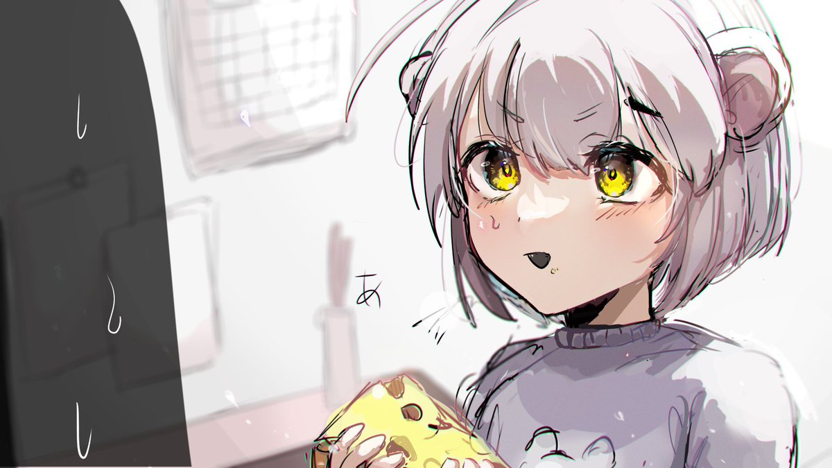 #イラスト #一次創作 家に帰ったらネズミ耳の少女が俺のチーズ食ってた