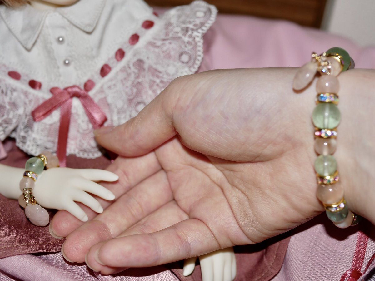 ティフィンさん(@Tea_fin_doll )から、オーダー品の桜餅ブレスレットが届きました!とってもかわいい😍 ドールサイズとオーナーサイズでペアなのです🌸 #ティフィン小物 #ドールとオーナー