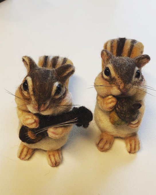1 9 こんにちは! 今日は、最近北海道立近代美術館に納品したエゾシマリスです。 この子達はウクレレやどんぐりを持っています。 是非近代美術館に見に行ってみてください(^-^) #ハンドメイド #羊毛フェルト #フェルト #リス #エゾシマリス #さくらトータルサービス #就労継続支援 22/06/03 13:31