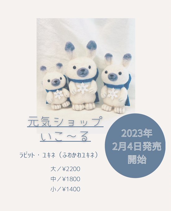 18 28 【訂正】2023年2月4日発売です⭐︎ 先日元気ショップいこーるさんへ、ラビットユキネ(ふわかわユキネ)をお渡ししてきました。 販売は2月4日からです。 お迎え待ってます⭐︎ #ラビットゆきね #ふわかわユキネ #羊毛フェルト 23/01/26 13:53