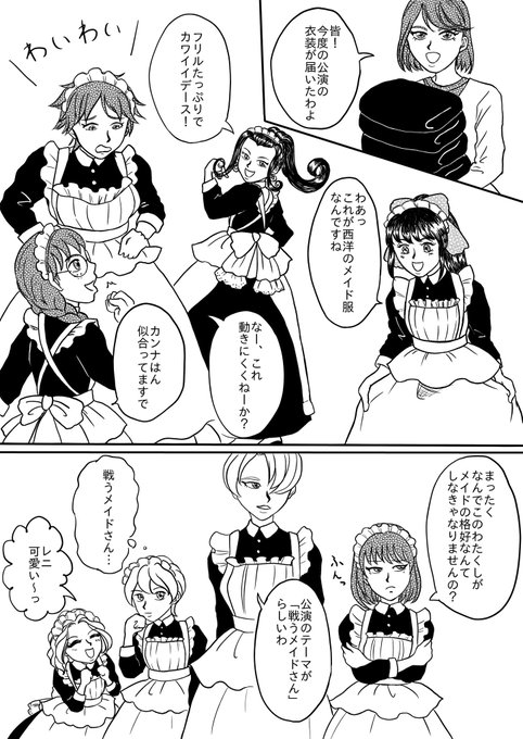 本当はメイドの日に出したかったけど作画カロリーが高すぎて間に合わなかったやつ!やっと出来た! すみれさんはサボってる訳ではなく紅茶の味見をしています。 マリアさんには執事よろしく華麗に紅茶を注いで女性ファンにキャーキャー言われてて欲しい #サクラ画廊 #太正ロマンファッションカタログ