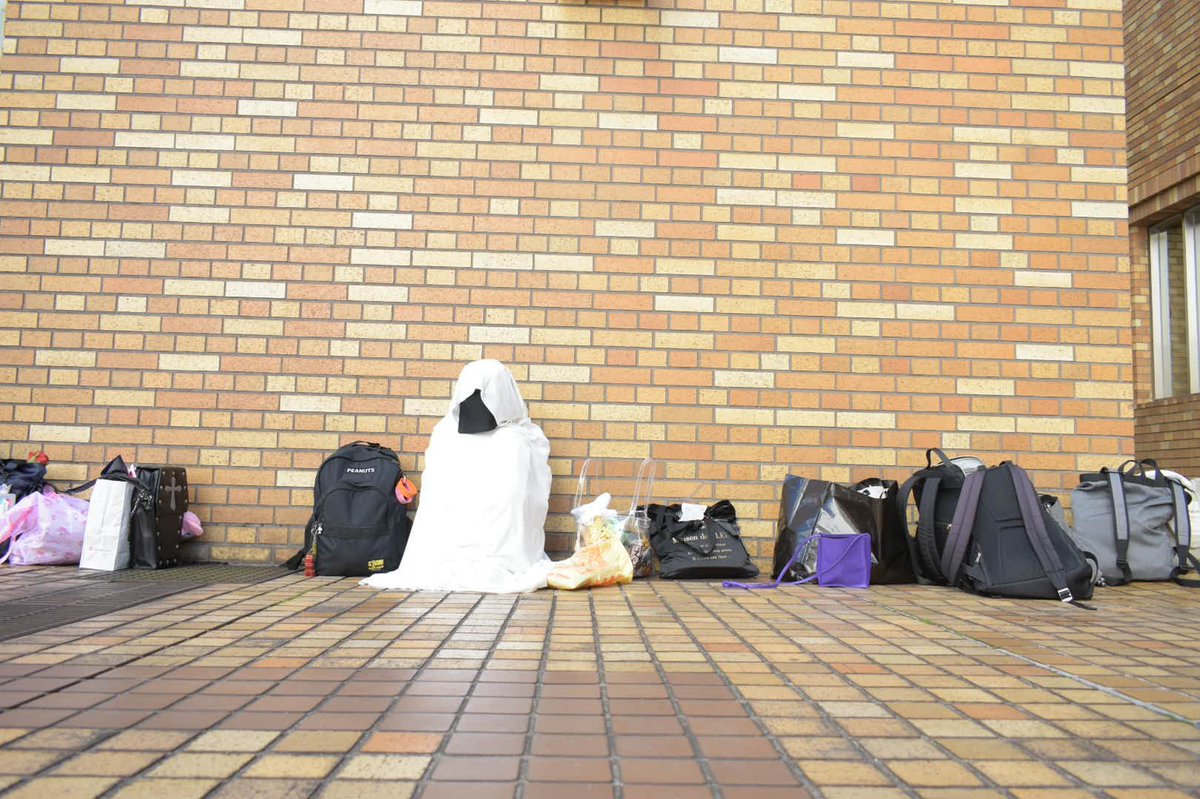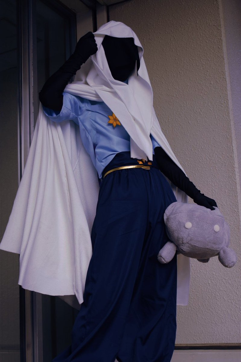 #コスモスナップ05 作品名「SKY 星を紡ぐ子供たち」 キャラ「書庫究極 虚無」 一言「顔の無いキャラなので素肌が全く見えないように全ての隙間を隠す様に工夫をしました。特徴的な真っ白なマントや頭巾は全長4mもあります。」