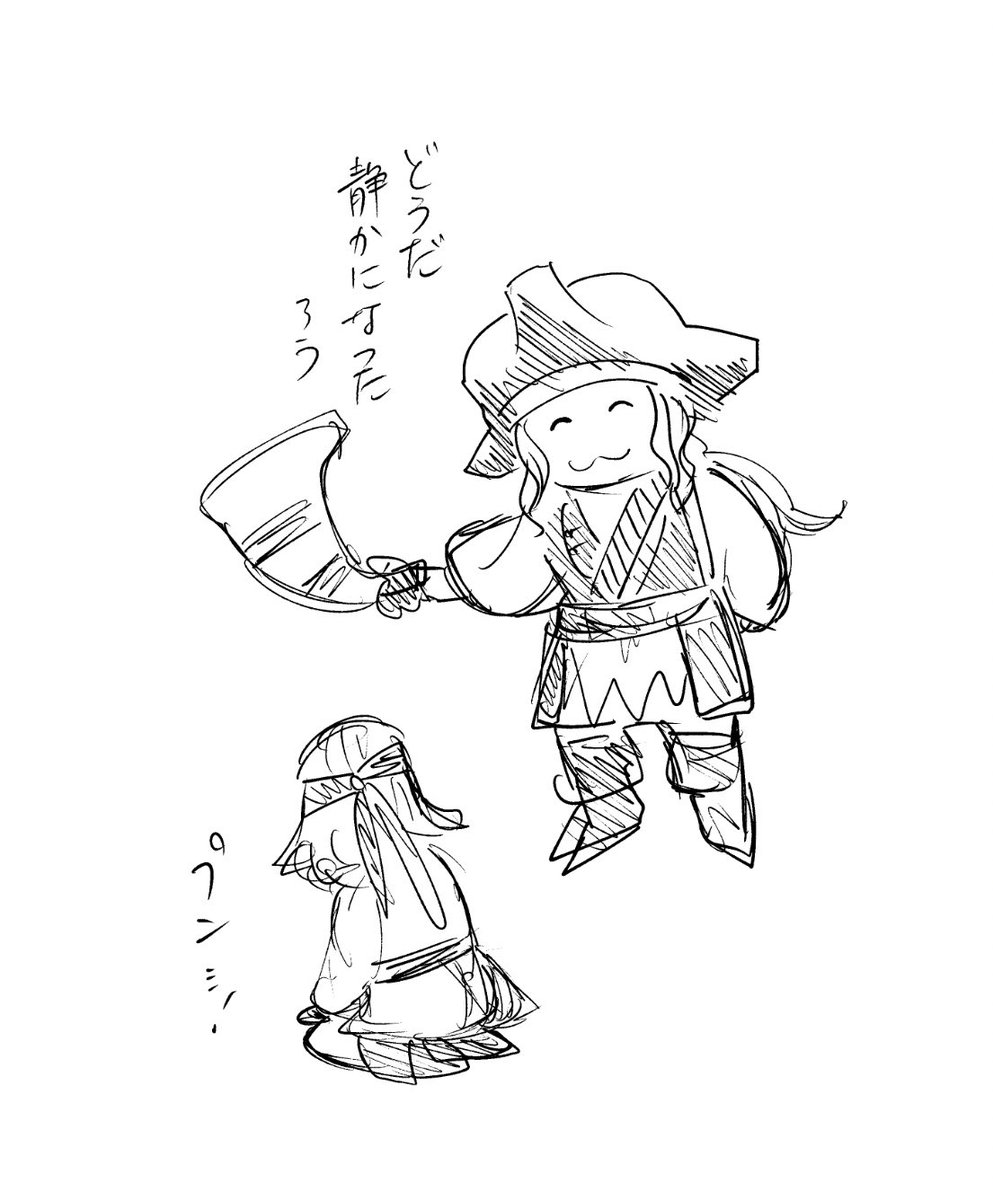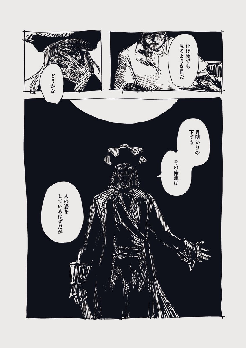iさん(@abiro_rum )の御本『出帆』より『海賊と猫と私』の大好きなシーンを描かせてもらいました😌 ※流血、モブ