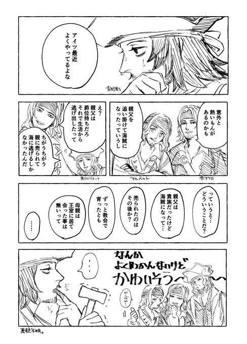 取り急ぎ夏海賊本の新刊サンプルです(ツリーに続く) 人物紹介はもう1枚ありますが今回のメイン所はこの辺りです~ #toonmix12