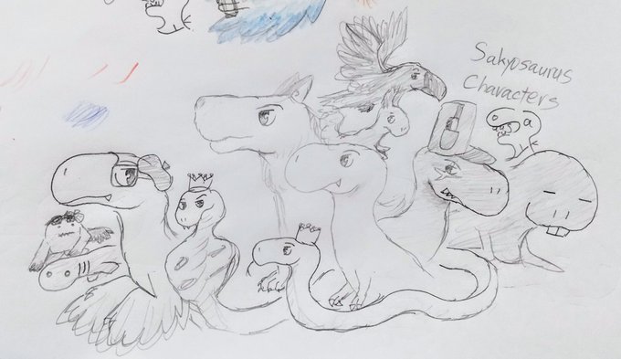 0 8 #自分のオリキャラを晒す見た人もやる 太古の昔に考えたやつら。 #恐竜 #イラスト #爬虫類 23/04/05 15:18