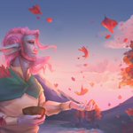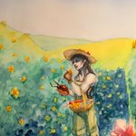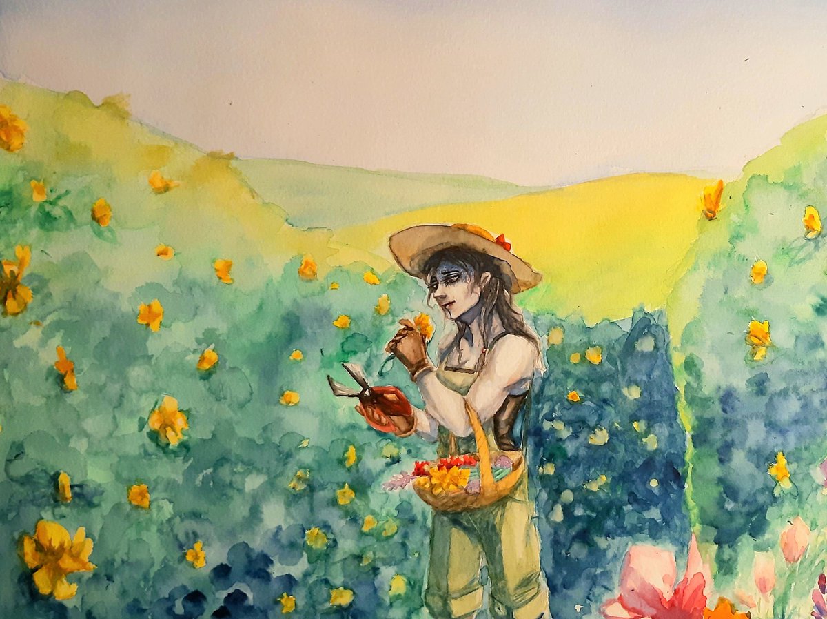 Yasha picking flowers for her wife on a day off, in water colour. A rare moment of peace. @TheVulcanSalute #Criticalrole #criticalrolefanart #mightynein