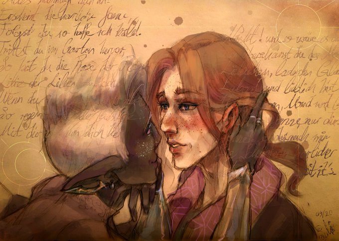 Caleb could probably recite so many Zemnian poems on the spot. This one in the background is a love poem from Johann Wolfgang von Goethe called "Gegenwart". #CalebWidogast #essekthelyss #shadowgast @CriticalRole #criticalrolefanart