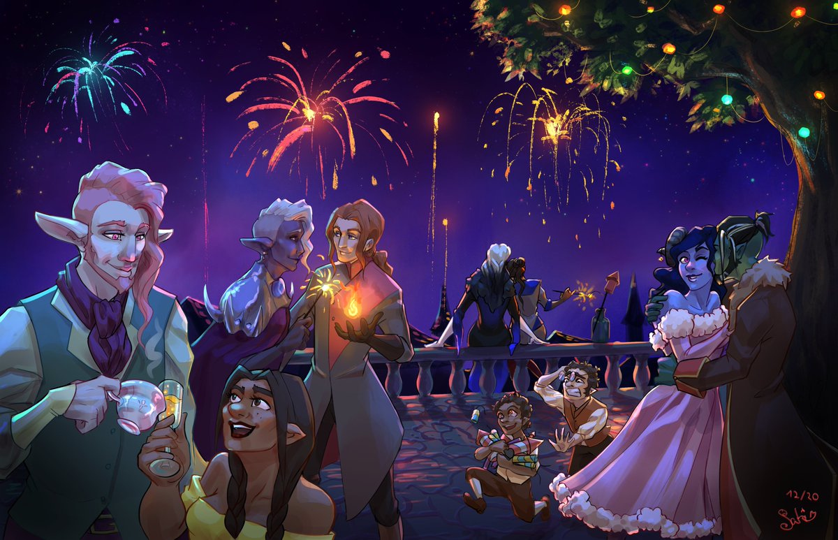 The Mighty Nein celebrating on New year's eve! First time doing a coloured artwork of the whole group wow! @CriticalRole #criticalrolefanart #Shadowgast #Fjorester #Beauyasha
