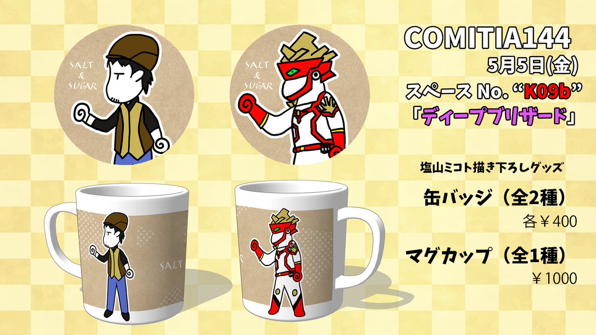 ご視聴ありがとうございました! 配信で発表させていただいたグッズは、 5月5日(金) の #COMITIA144 にて頒布させていただくのでぜひ遊びにきていただけると嬉しいです✨ リプ欄に実物の写真をあげていくので、配信見れなかった方はご参考ください! #COMITIA144お品書き twitter.com/SalSuga_mikoto…