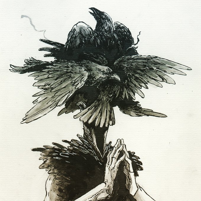 INKTOBER - Day 05: Raven #inktober #inktober2021 #inktober2021day5 #raven #illustration #art #INK #myart #makearteveryday #practice #wip #sketchbook #dailysketches #inkdrawing