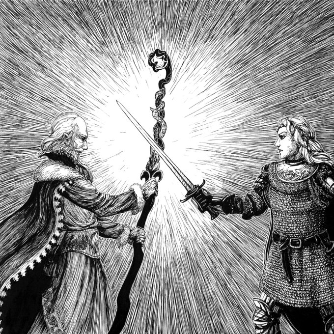 #inktober #inktober2021 17/31 collide (сталкиваться, вступать в конфликт) #fanart по игре "The Battle for Wesnoth" - cражение Делфадора и принцессы Лисар в сценарии "Princess of Wesnoth" кампании "Heir To The Throne".