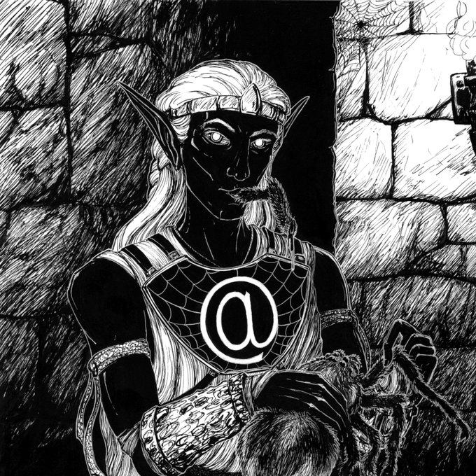 #inktober #inktober2021 #inktober52 28/31 crispy (хрустящий) Для тёмных эльфов из игры #AncientDomainsOfMystery пауки не только друзья и священные животные, но и вкусная еда. Хаотики такие хаотики... #fanart #ADOM