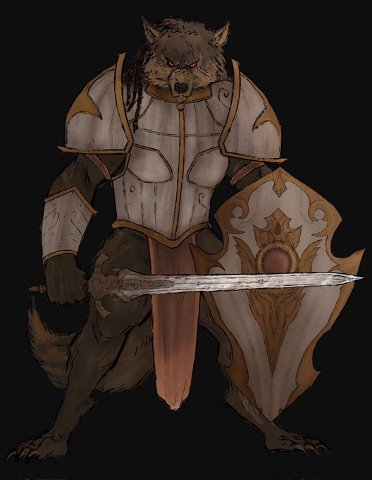 La loba paladín del otro día pero con su espada y escudo! #dnd #dndart #DnDcharacter #conceptart #conceptartist