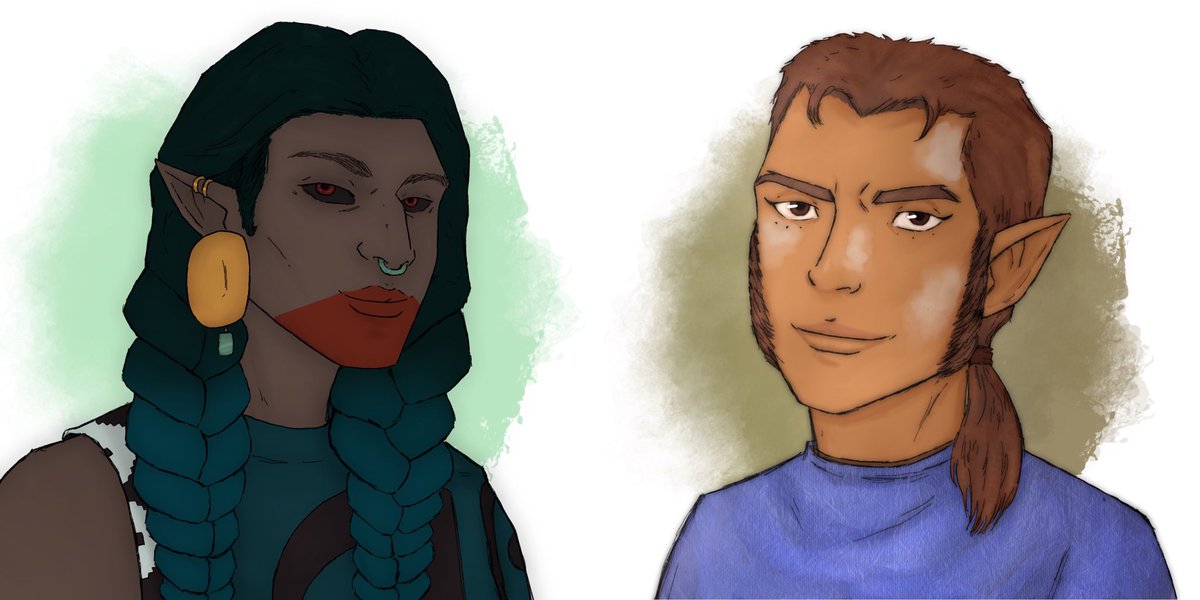 Dos Npcs que he diseñado para mi campaña de Tumba de la aniquilación. Dos pedazo de lesbianas que esperan un bebé y tienen una posada en Puerto Nyanzaru. No me convencen del todo el diseño pero bueno aquí están :) #dnd #dndart #characterdesign