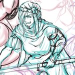 記念絵ネタ解説① 一番最初に決まった構図 ストーリーで離れ離れになる二人を宗教画のようなイメージで描きたいと思った。 ゼロムスマインドも添えて…www ええ、フースーヤは女神枠ですよw twitter.com/Saltymofumofu/…