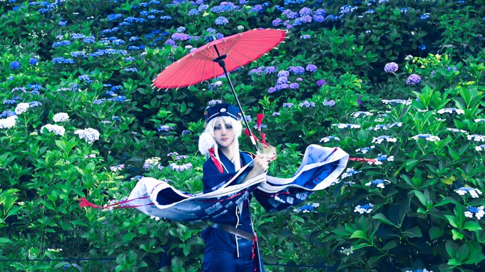 おそくほ! 白山で紫陽花撮影してきました〜✨ データ本当天才すぎて全部見て見てする……(確信) めちゃくちゃ楽しかったー!!日焼けして顔半分痛い!! (コス自撮反転)