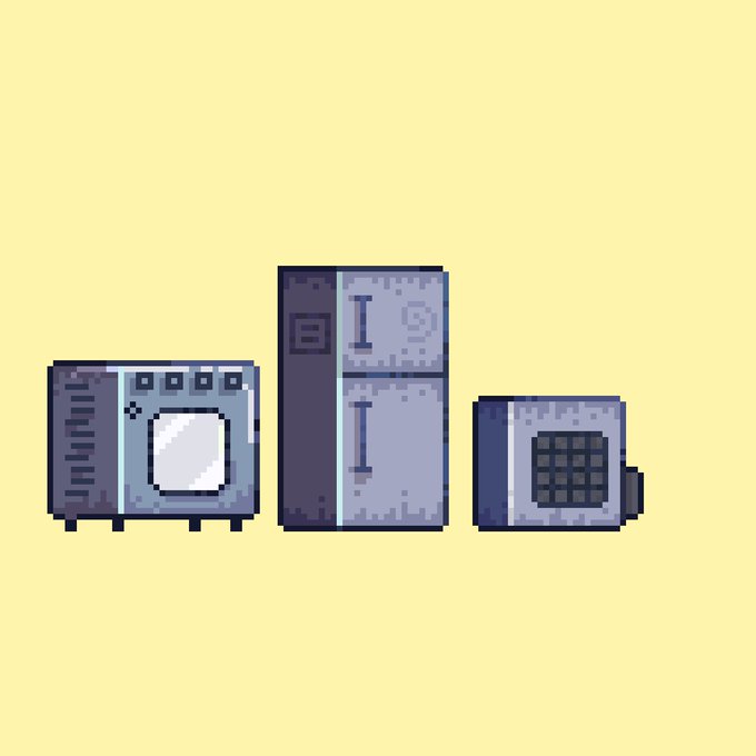 Pixel dailies is sponsored by Whirl- Some old #whirlpool model appliances. #pixelart #twitterforartists #ドット絵 #pixel_dailies @Pixel_Dailies