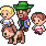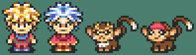 Drew sprites of the 2002 versions of Lucas, Claus, Salsa, and Samba respectively. Tried to base them on the sprites from Magical Vacation and Sword of Mana, both of which are GBA games worked on by Brownie Brown before MOTHER 3. #MOTHER3 #Pixelart twitter.com/MotherForever_…