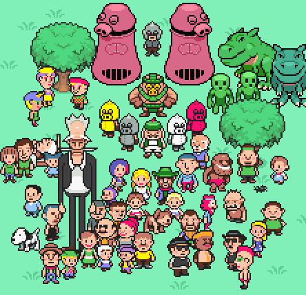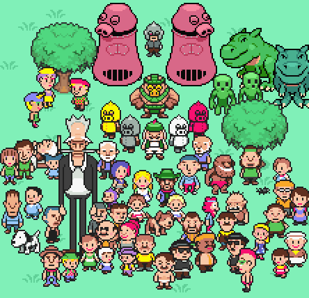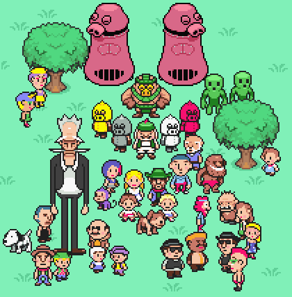 I made a picture of all my GBA style Earthbound 64 sprites so far #mother3 #earthbound64 #pixelart