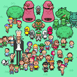 I've been drawing more EarthBound 64 characters, so here's an updated version of that picture i posted before, with all the new sprites I've made #earthbound #MOTHER3 #earthbound64 #pixelart