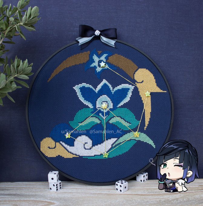 3 6 I'm so sad I couldn't get this out in time for her birthday but I'm finally done with Ayaka's constellation piece!!! ❄️ Belated Happy Birthday to my Best Girl~❄️ 🎂 #GenshinImpact #GenshinImpactFanArt #CrossStitch #Embroidery #FanArt #Ayaka #AyakaKamisato #Constellation #DMC 22/10/04 03:57