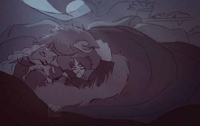Nap on cold days ❄️ In my HC Soraka it feels VERY cold and with your daughters it would be no different, I like to imagine that on very cold days the babies have trouble sleeping so everyone sleeps together in a small warm nest #leagueoflegends #LeagueOfLegendsFanArt