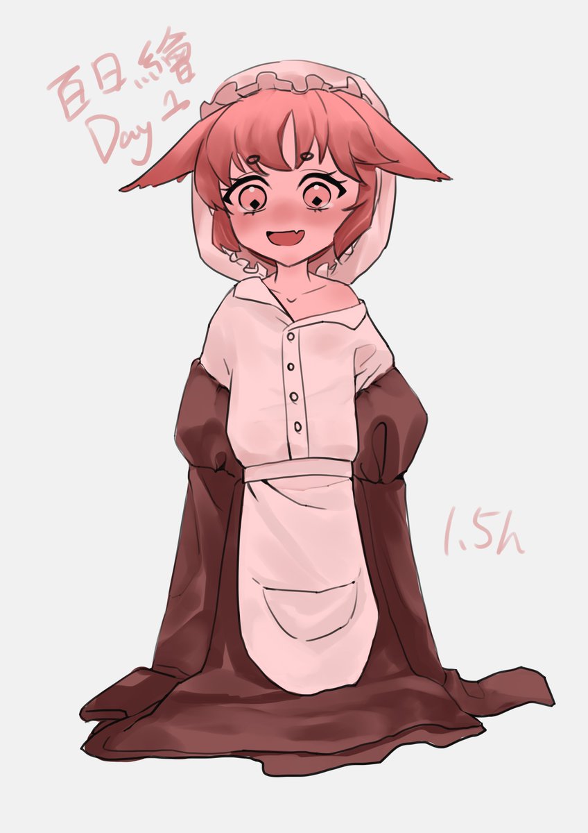 百日繪 Day 1 其實我也不知道是不是1.5小時 但應該是以內 #ケモ耳 #イラスト #メイド服 #子供 #art #sketch #doodle