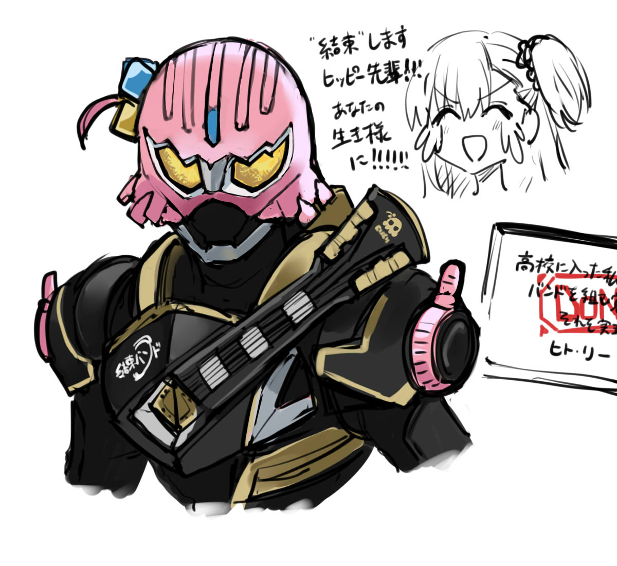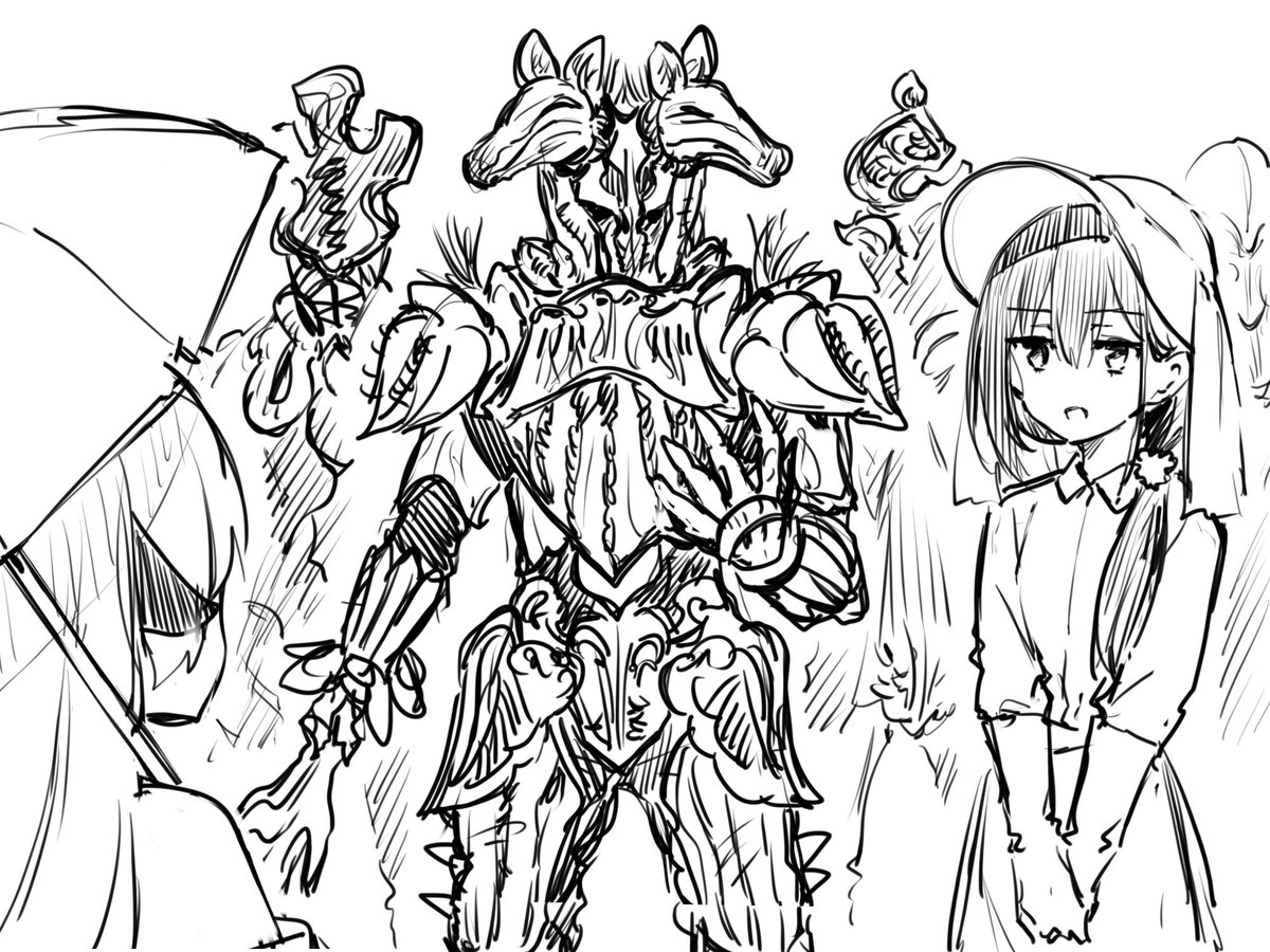 こだわりポイントは「権利関係で原作絵やキャラクターが使えないので漠然とした謎のイメージによって出力された表紙絵」……という体を装って描いた鎧兜の女子高生です