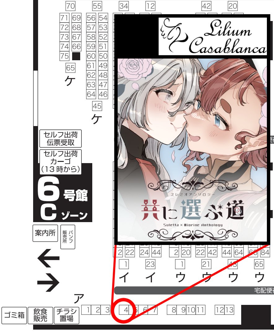 ◎あなたのサークル「LiliumCasablanca」は 土曜日 東地区 “ス” ブロック 14b に配置されています。 webcatalog.circle.ms/Perma/Circle/1… 夏コミ受かりました!! ちさたきアンソロ二冊目、スレミオアンソロ、アイカツアンソロの三冊の予定です! (参加者様募集中です→twipla.jp/users/Samidare…)