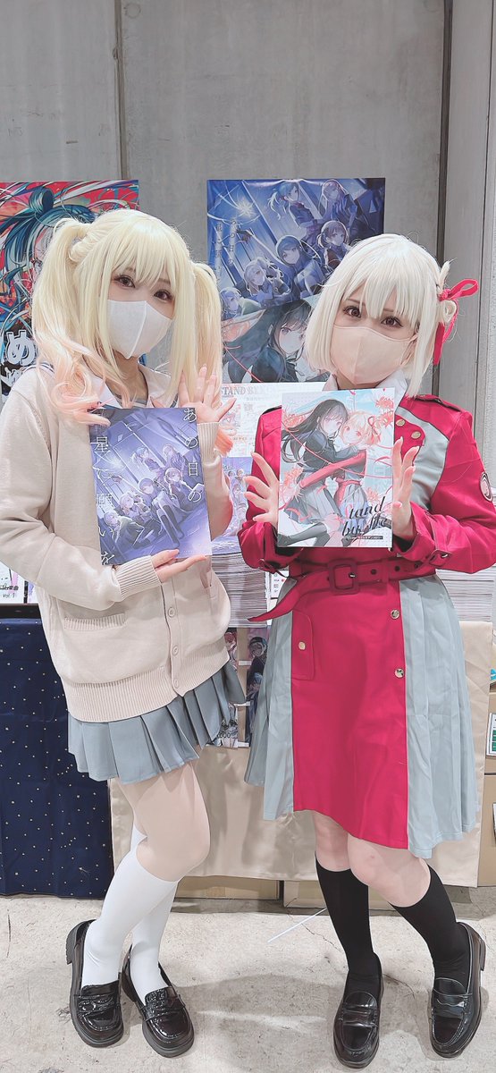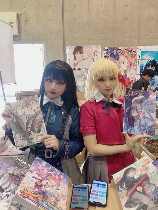 設営完了しました! 東6ホール ス14bにてお待ちしています!! かわいいレイヤーさん 千束 @melting_bbhs たきな @may_xoxo15 twitter.com/samidare_haduk…
