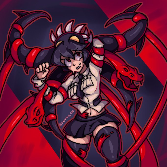 Double 🛐 Tarde en acabar el dibujo pero quedó bonito, ahora a seguir dibujando chichis 👺 #Skullgirls #skullgirlsfanart