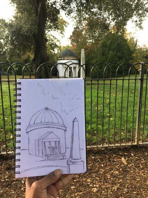 My fingers turned white. I'm afraid how the cold and shorter day light hours are going to affect my practise. #sketchbook #Inktober #artist @Chiswick_House