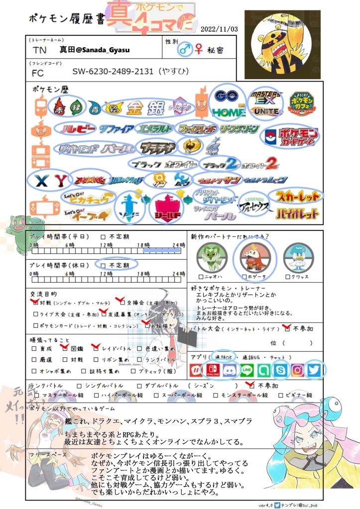 6 76 #ポケモン絵描きさんと繋がりたい #ポケモン履歴書 ポケモン履歴書更新しました。よければお友達になりましょう。 22/11/03 23:30