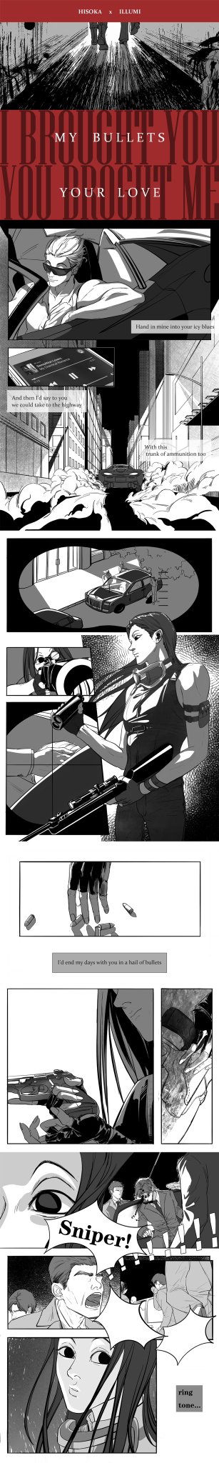 Aug 28th :alternate universe 是西索和狙击手伊路米的故事 把之前画的漫画简单翻译了一下拼成了长图,为什么只能发四张图片… 可以一边听MCR的《Demolition Lovers》一边看这篇漫画! #hisoilluweek2022 #hisoilluweek #hisoillu #hxh #hxhfanart