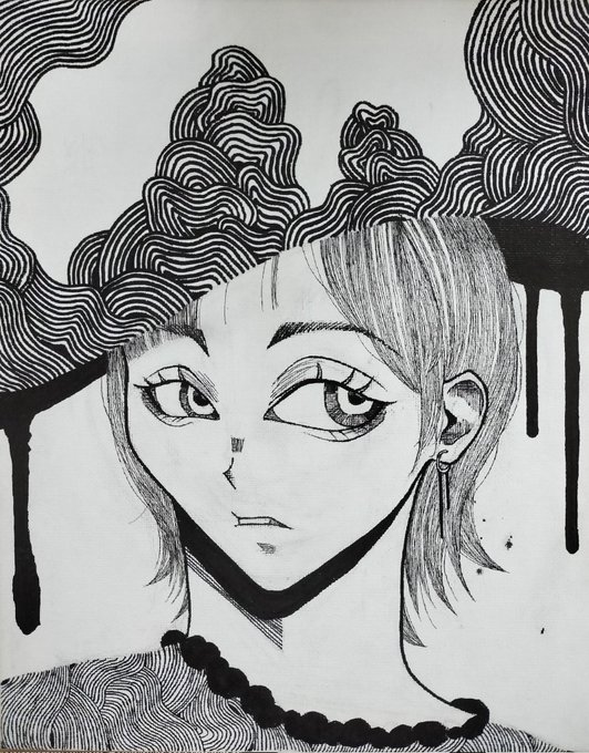 #三億アカウントの中から私を発掘してください #イラスト ペンと墨で女の子描いてます!!