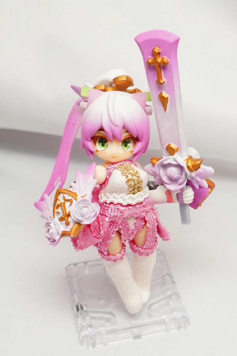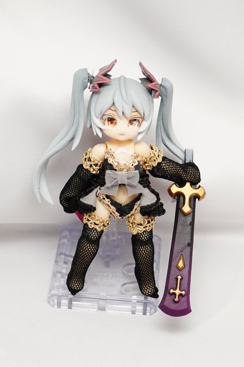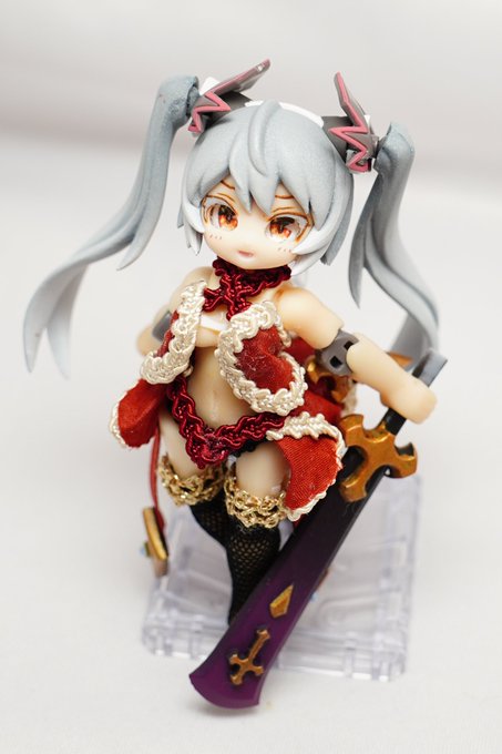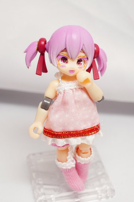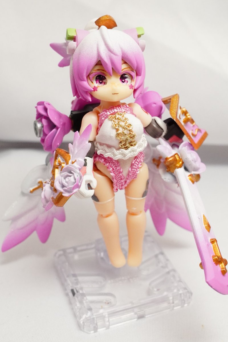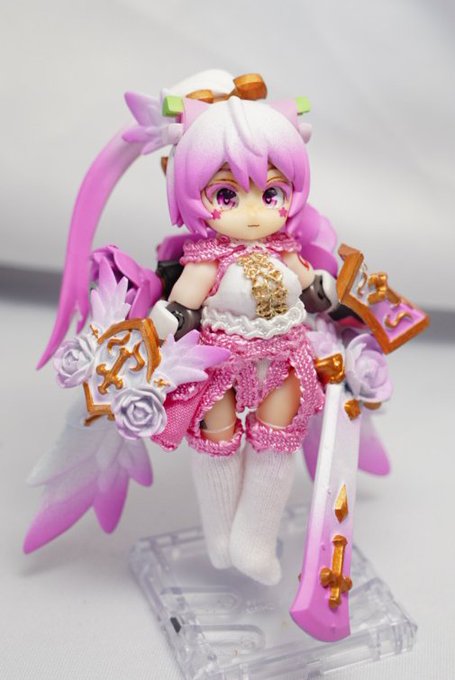 さくらちゃん 気付いたら一人完成していました。ちょっと主役風。 素体はイノセン、迅雷、シルⅡと朱羅の組み合わせで、衣装は新規作成、武装はローズさんとかのを流用+髪留め新作です。専用カラーで塗装しています。 今後はメイクをピンク加筆で修正かな。 #デスクトップアーミー