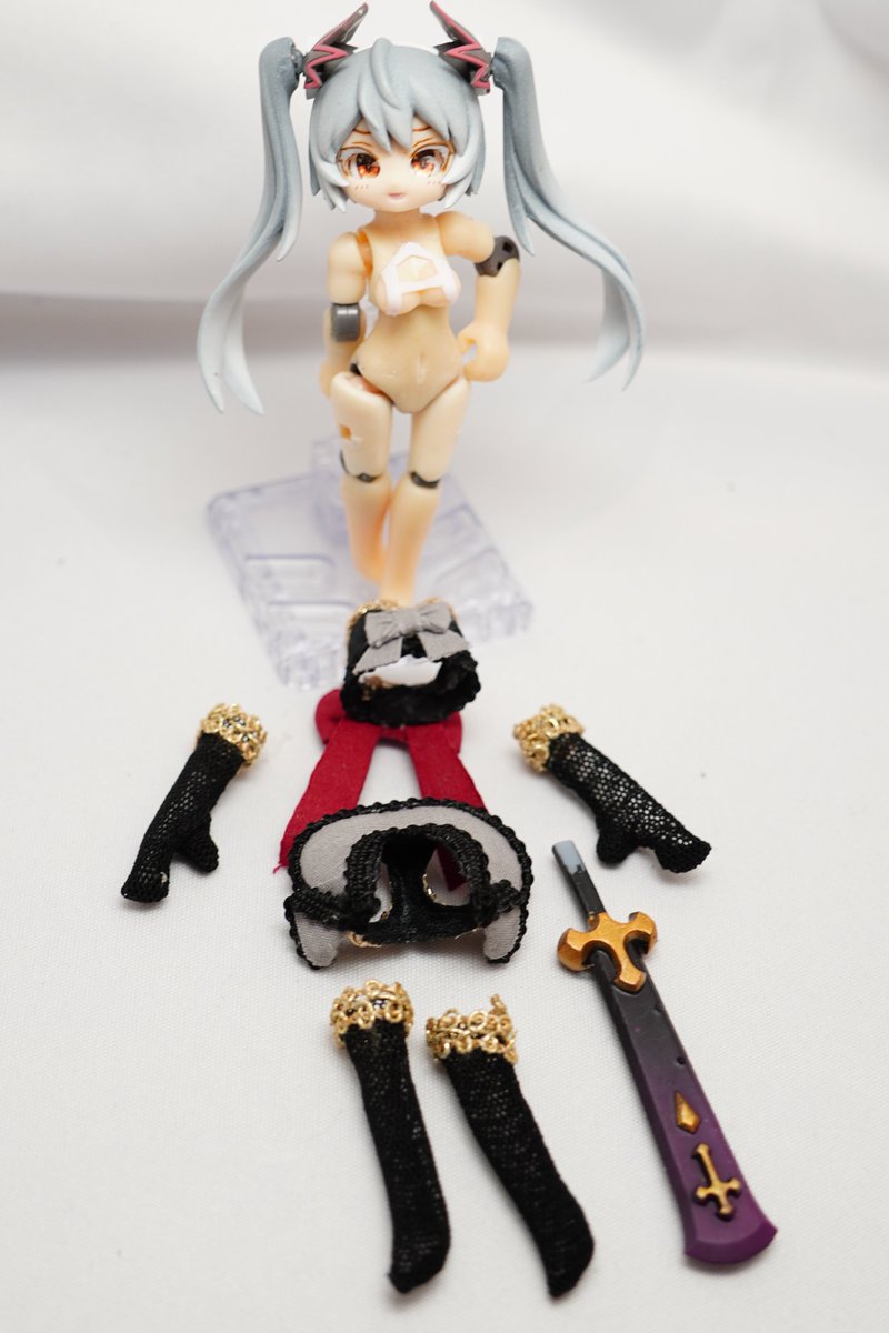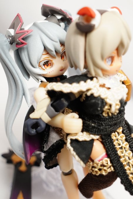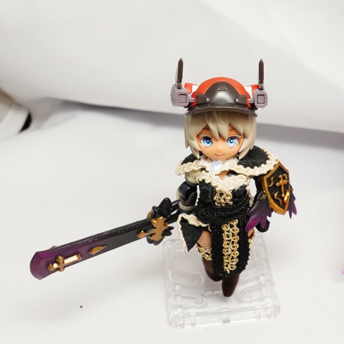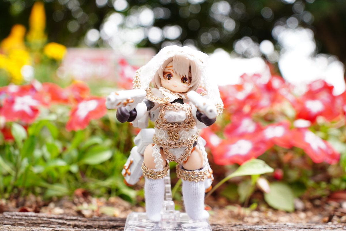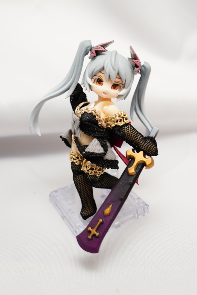 さくらちゃん 気付いたら一人完成していました。ちょっと主役風。 素体はイノセン、迅雷、シルⅡと朱羅の組み合わせで、衣装は新規作成、武装はローズさんとかのを流用+髪留め新作です。専用カラーで塗装しています。 今後はメイクをピンク加筆で修正かな。 #デスクトップアーミー