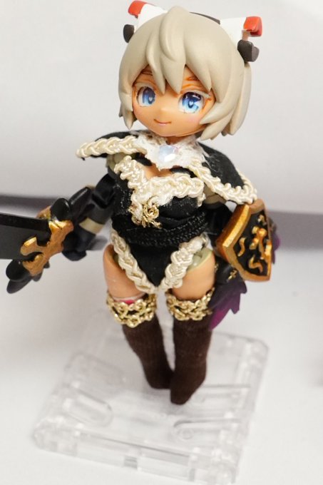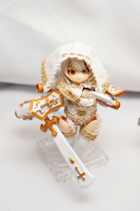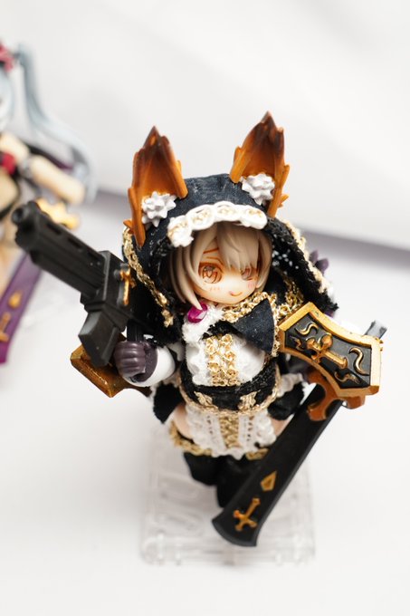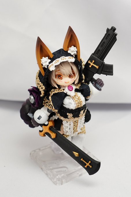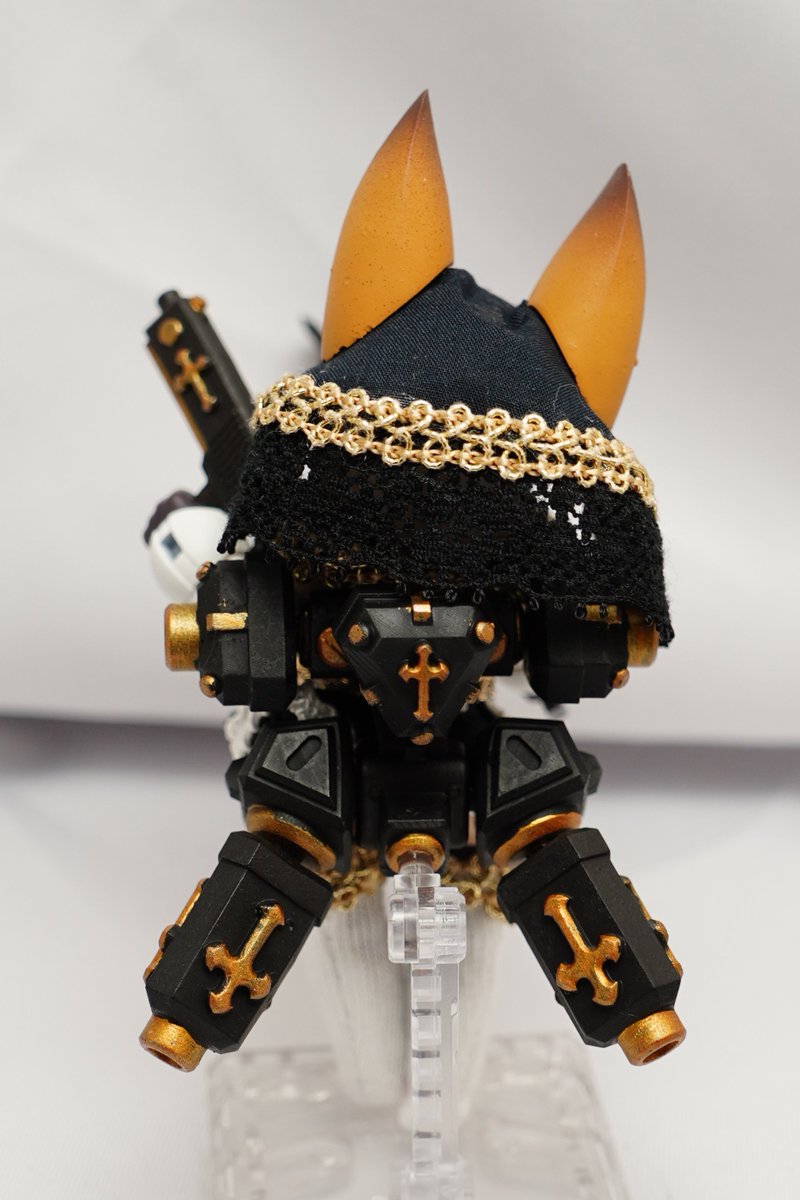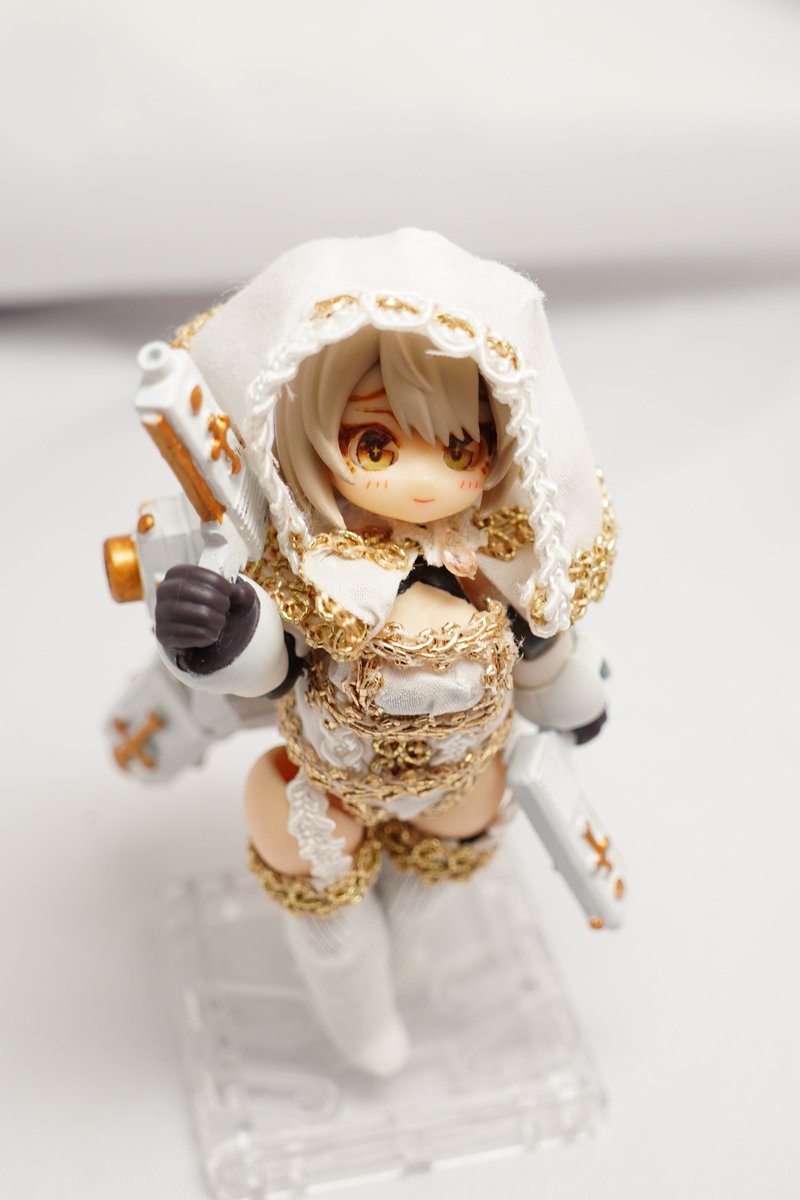 白百合の断罪者 籠手を追加しました。カッコイイ!でも、ちょっと可動の妨げになりますね。どうしようかな。 せっかくなので頭巾にケモミミを付けたくなりますね。 十字架風アクセで良いかも。 #デスクトップアーミー